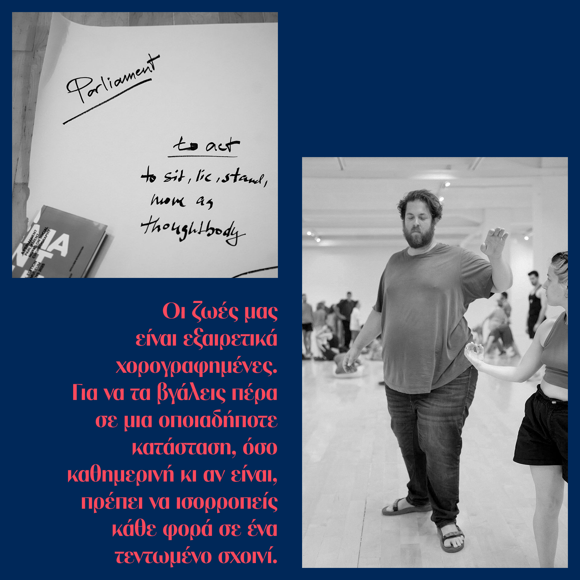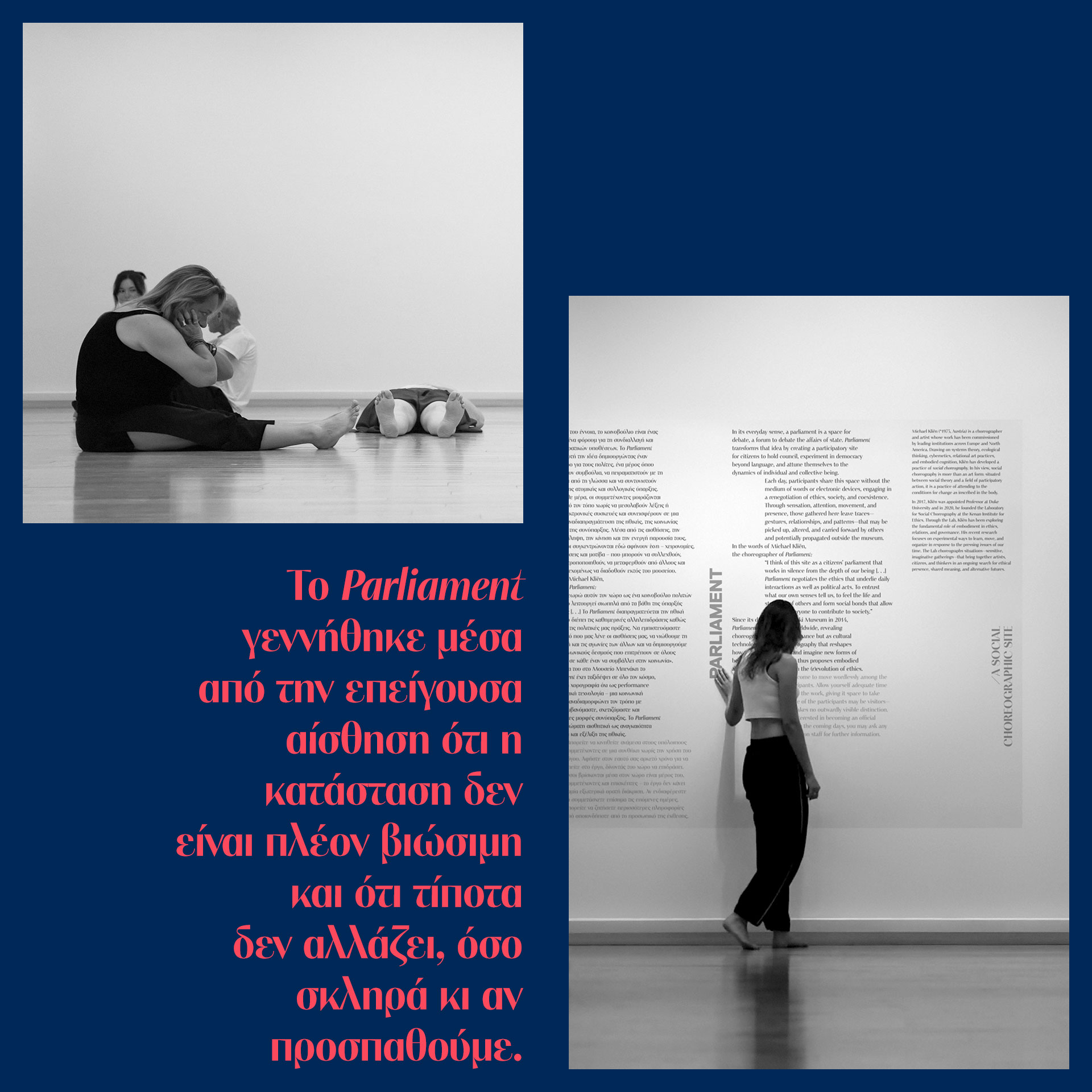 Since its debut at the Benaki Museum in 2014, Parliament has unfolded worldwide, revealing choreography not as performance but as cultural technology—a Social Choreography that reshapes how we perceive, relate, and imagine new forms of being together. Parliament thus proposes embodied aesthetics as a necessity in the (r)evolution of ethics.